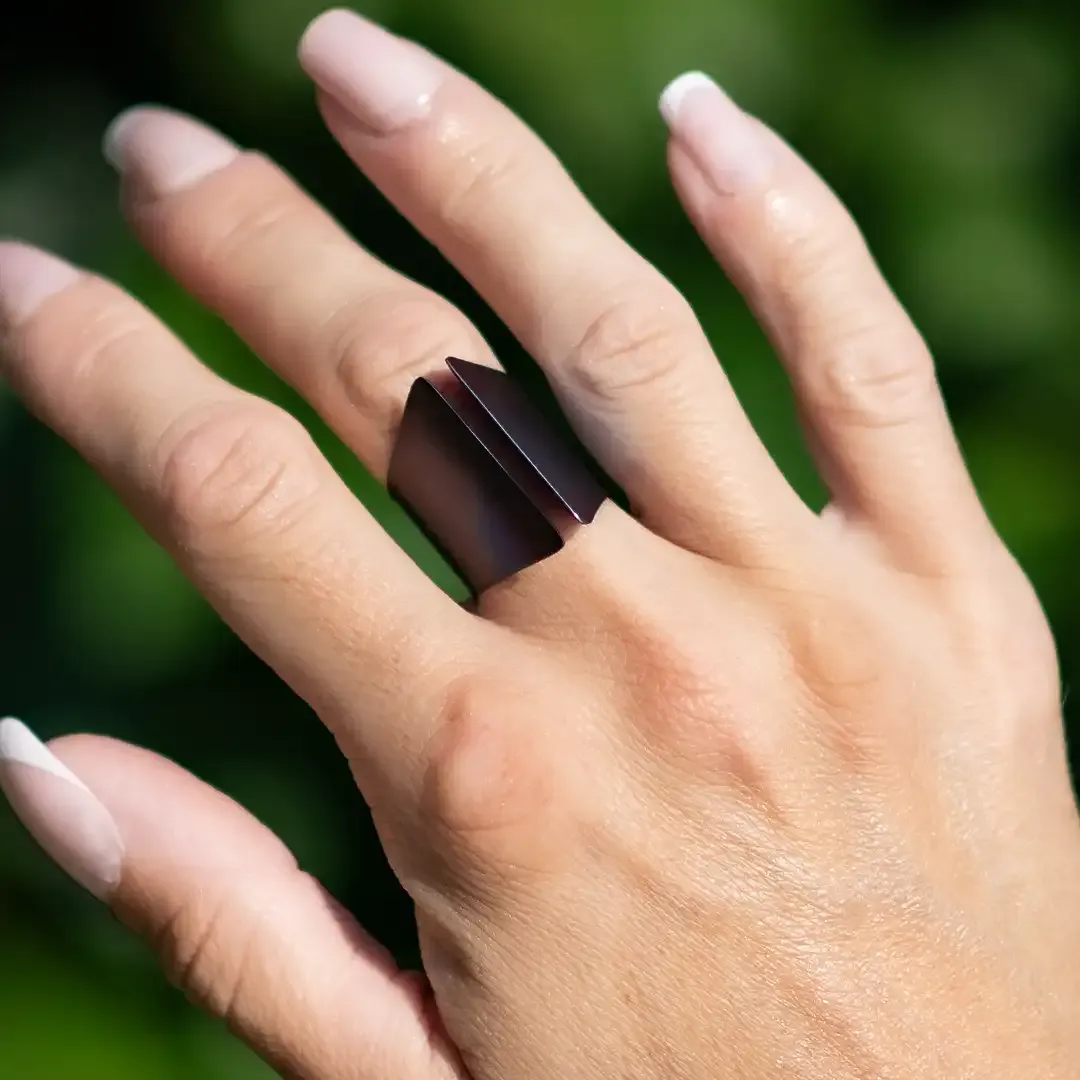 Anello a fascia realizzato interamente in titanio dal design unico e originale. Perfetto per chi ama un tocco di colore.