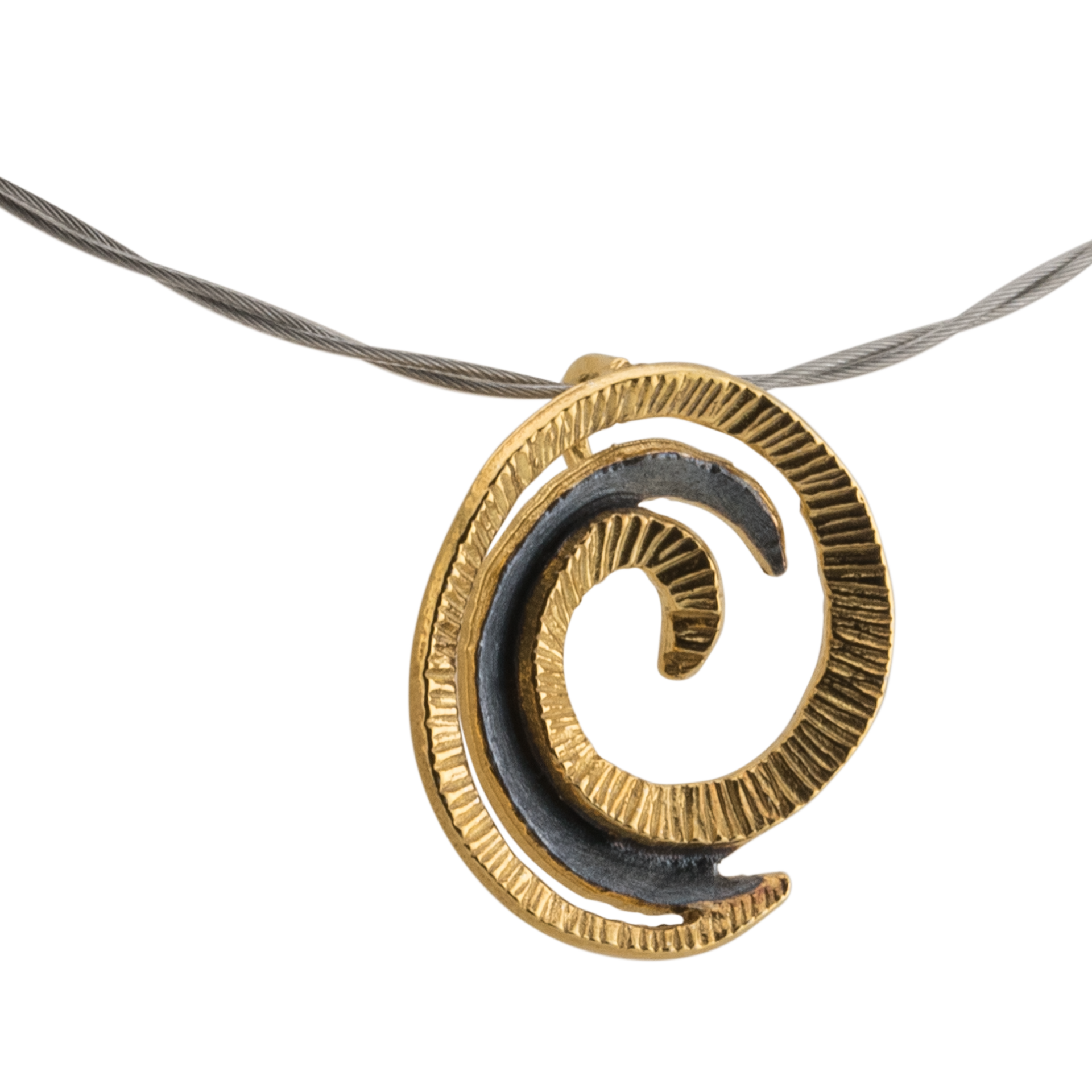 Collana con pendente a spirale in argento 925 brunito e bagno in oro