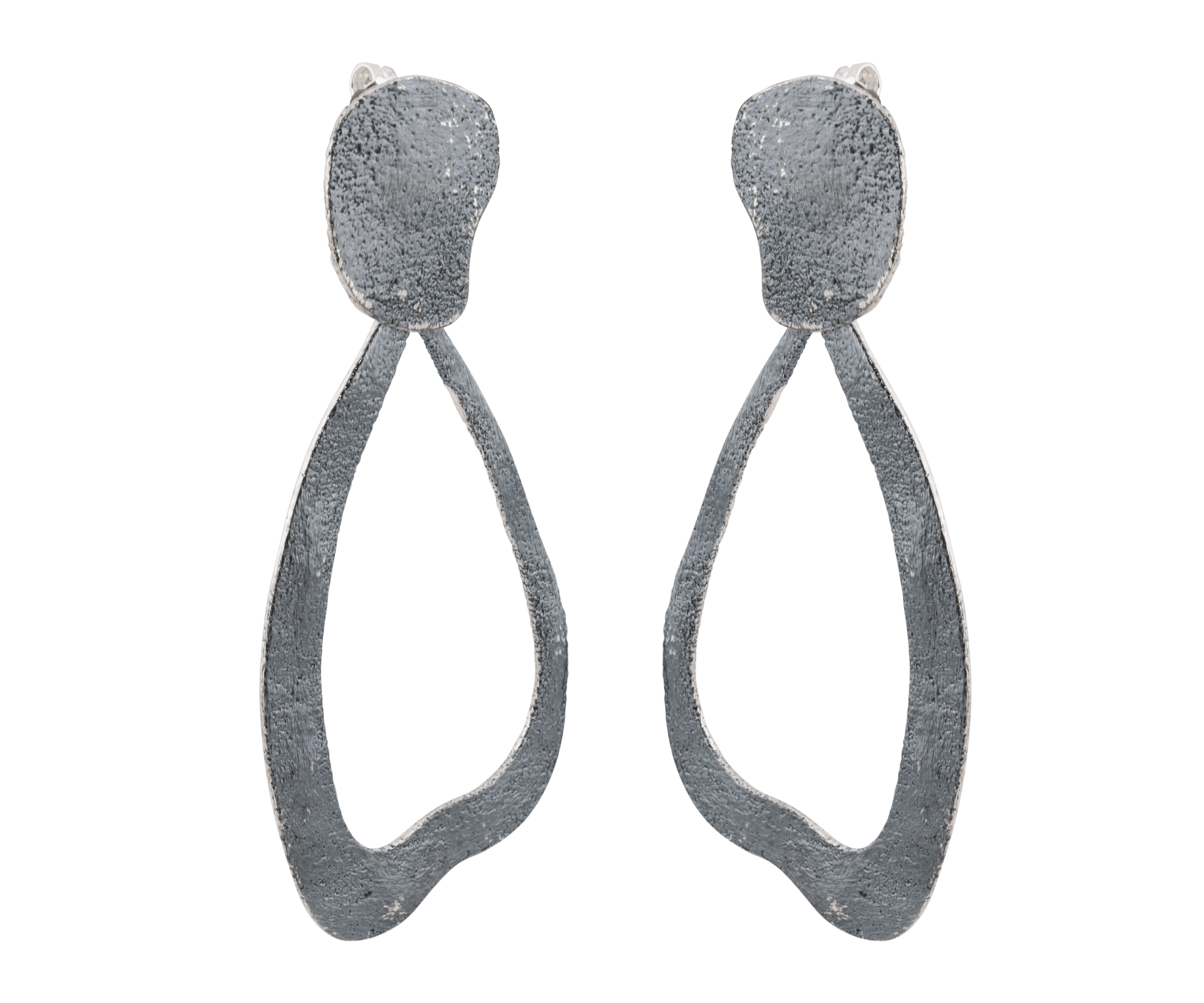 Orecchini in argento dal design elegante e curvilineo, impreziositi da una pietra di avventurina verde alla base. Le linee fluide del metallo contrastano armoniosamente con la tonalità naturale della pietra, creando un gioiello sofisticato e particolare. Chiusura a farfalla.